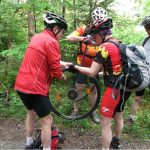 Weiter geht’s. Nobs verzweifelt am Wegesrand. Luft vom Reifen ist verschwunden.Kein Problem. Reifenwechsel rasch erledigt. Mit seiner Radlpumpen würde er noch heute dort verweilen. Die Boxencrew fährt den Berg hinauf. Anruf von Nobs. Luft schon wieder weg. Alle wieder den Berg hinunter. Eisenspan im Mantel wurde nicht erkannt. Auch dem Gini wurde erklärt, dass seine Pumpe nicht das richtige Gerät ist um Reifen aufzupumpen. Zwischenstück passt zu gar nichts. Falsche Pumpe mitgehabt. Fix nochmal, hat eh die gute Teure zu Hause.